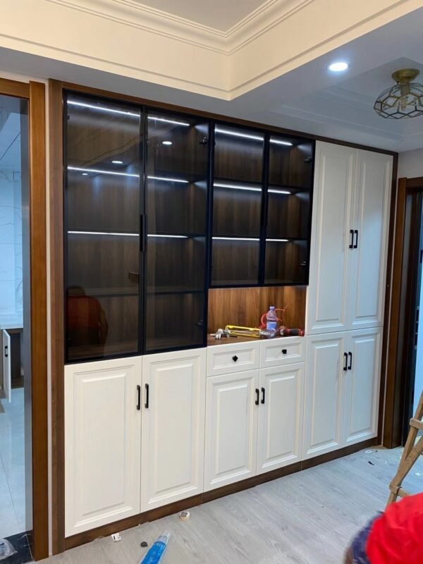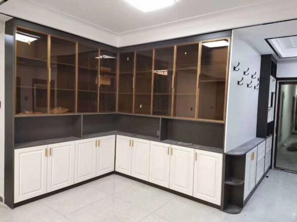 Add elegance to your home with the Minimalist Aluminum Frame Sliding Door. Featuring a narrow-edge aluminum frame and tempered tea gray black Changhong glass, this door is designed to complement modern interiors. Whether used for a wardrobe, wine cabinet, cloakroom, or bookcase, its flat sliding design ensures smooth operation and maximizes space. The minimalist aesthetic creates a sophisticated look, while the tempered glass provides durability and a touch of luxury. Perfect for any room that needs a stylish partition or door, it combines functionality with modern design.