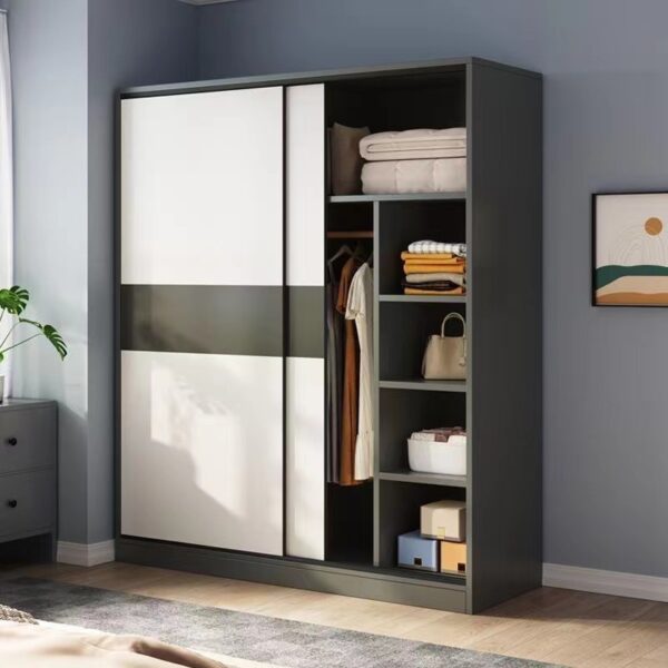 This Simple Household Bedroom Storage Cabinet is designed for practicality and style, offering an economical solution for organizing your space. Featuring a sliding door design, it saves space while providing easy access to your clothes and belongings. Ideal for rental rooms, children’s rooms, or small apartments, this modern wardrobe offers ample storage without taking up too much space. The sleek, minimalist design fits well with various decor styles, making it a versatile addition to any home. This affordable wardrobe is perfect for those looking for functional, space-saving storage in a simple and modern package.