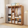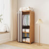 This open, floor-standing wardrobe is both strong and durable, featuring a dustproof shelter curtain. Ideal for rental rooms, it provides an economical and practical solution for storing clothes and essentials with free shipping.