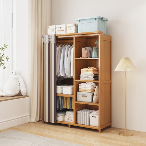 Simple Open Floor-Standing Wardrobe with Dustproof Curtain – Durable & Economical